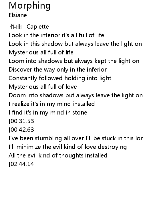 | [02:33.23][02:44.14][02:56.19] | Settle down my evil start minimize my evil side |