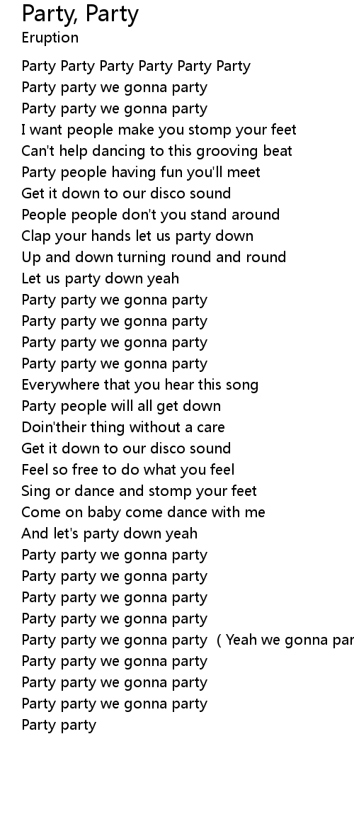 | [02:08.631] | Party party we gonna party Yeah we gonna party down |
