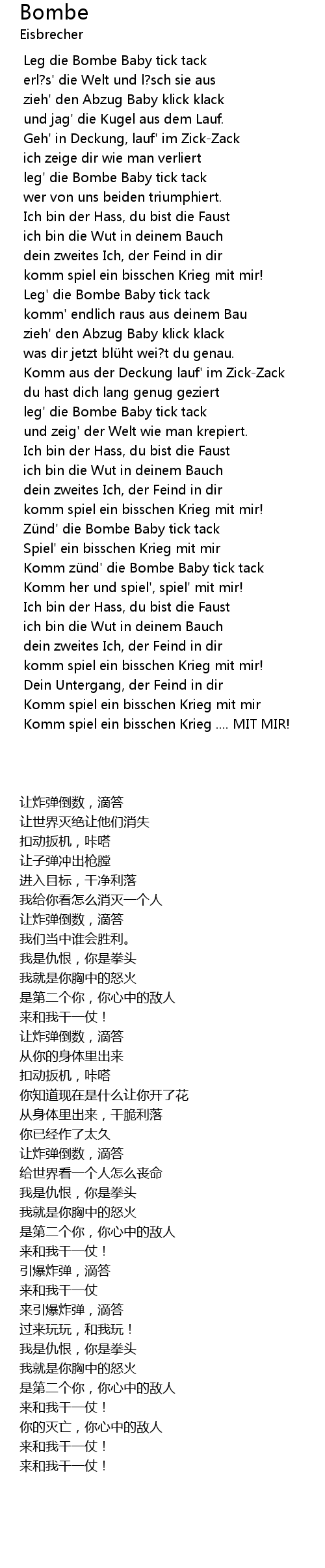 | [00:37.300] | leg' die Bombe Baby tick tack |