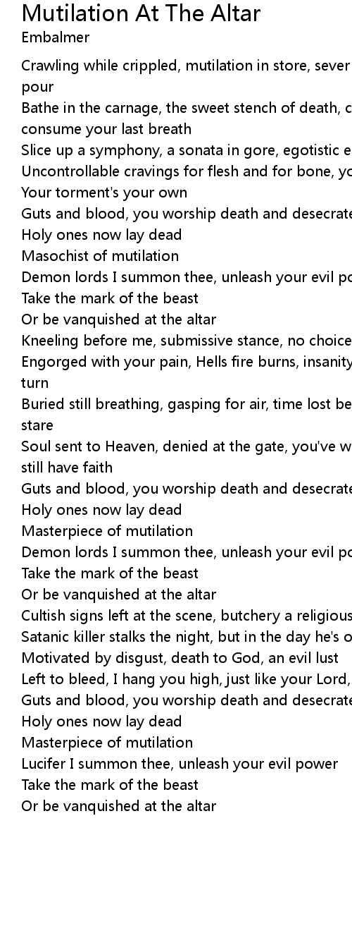 Slice up a symphony, a sonata in gore, egotistic epiphanies, salivating for more |