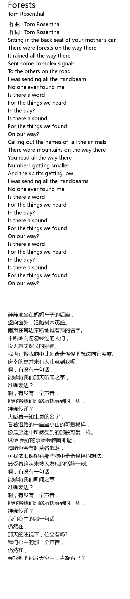 | [00:01.000] | zuo ci : Tom Rosenthal |