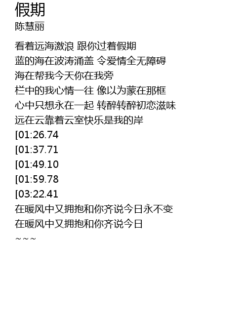 | [00:19.79] | 看着远海激浪 跟你过着假期 |