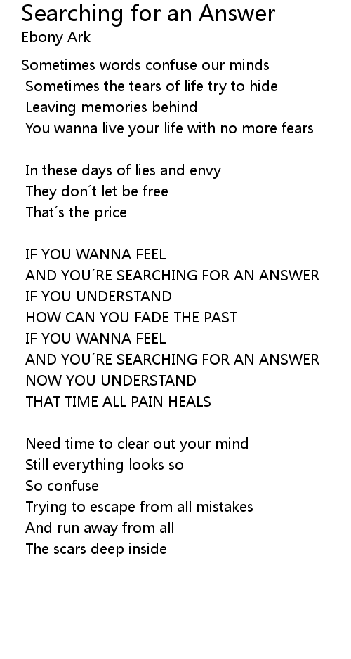 | AND YOU´RE SEARCHING FOR AN ANSWER | |