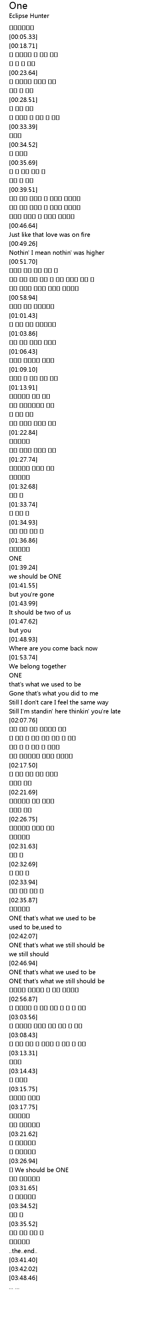 | [03:27.68] | 꼭 We should be ONE |