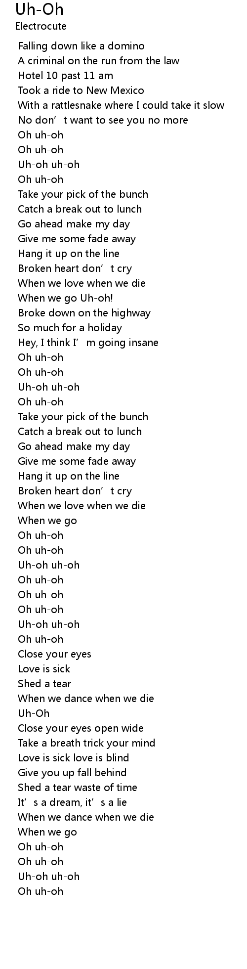 | 歌曲 | Uh-Oh |
