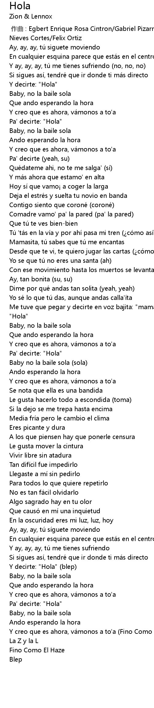 | [01:23.76] | Dime por qué andas tan solita (yeah, yeah) |