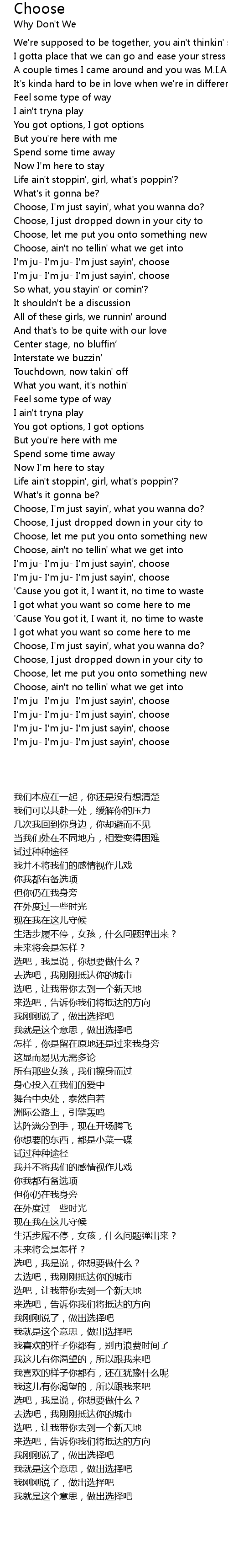 | [02:35.54] | I'm ju- I'm ju- I'm just sayin', choose |