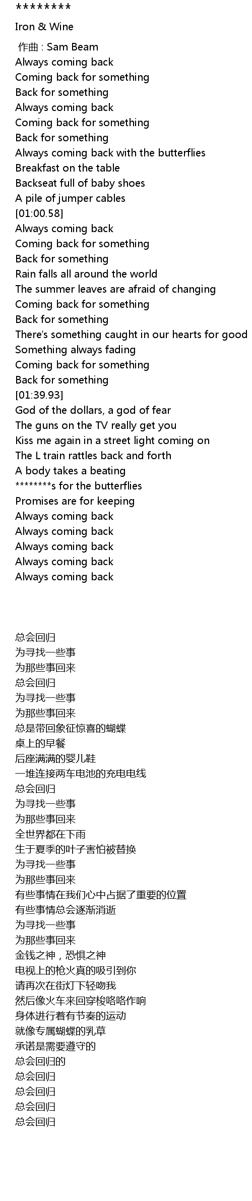 | [00:33.38] | 总是带回象征惊喜的蝴蝶 |
