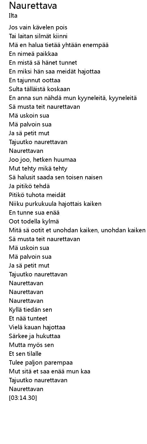 | [00:41.37] | S musta teit naurettavan |