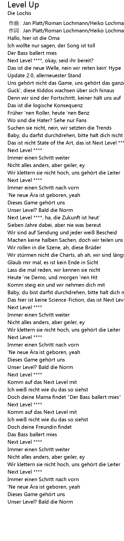 | [00:00.557] | zuò cí : Jan Platt Roman Lochmann Heiko Lochmann Ludi Boberg |