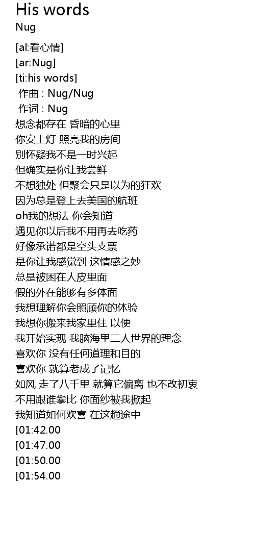 | [00:00.000] | zuò qǔ : Nug Nug |