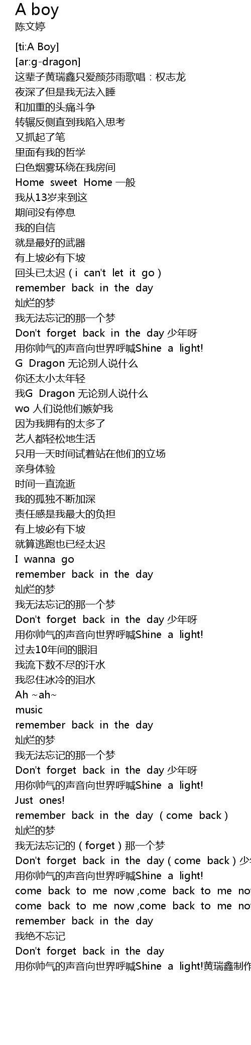 | [02:52.644] | Don' t forget back in the day come back shào nián ya |