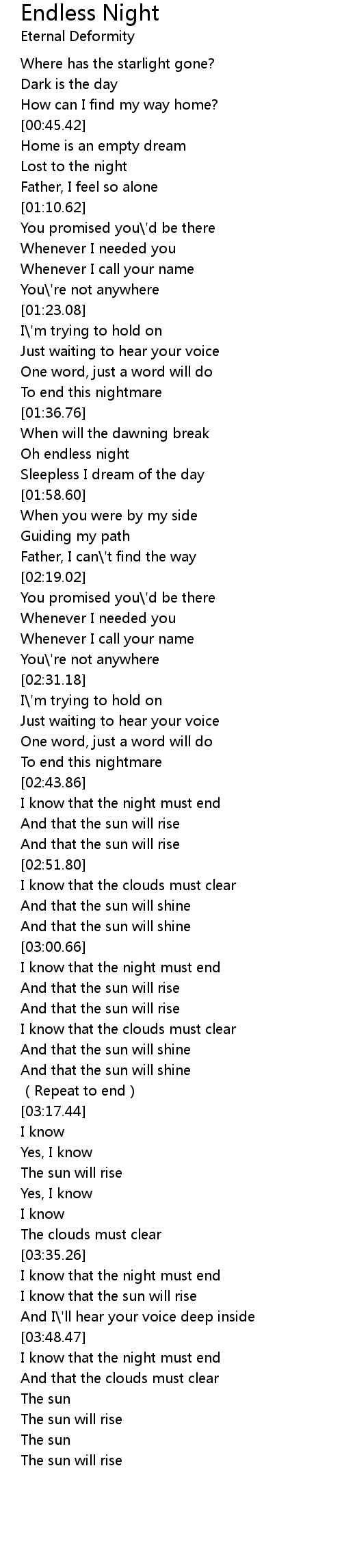 | [01:43.57] | Oh endless night |