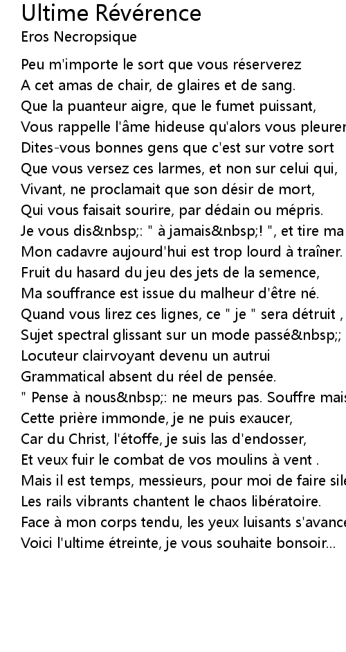 | 歌曲 | Ultime Révérence |