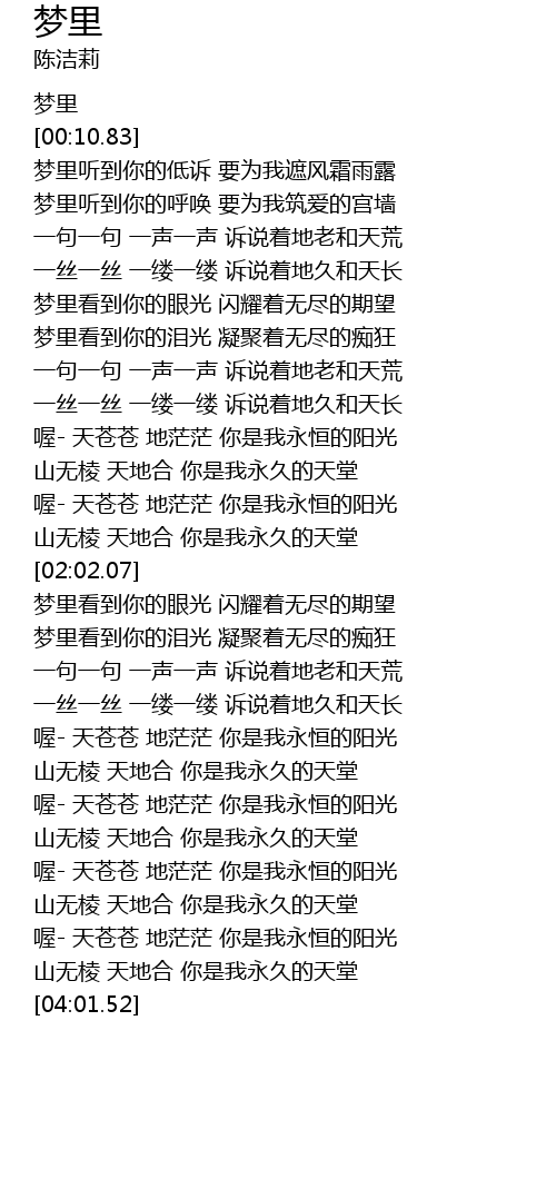| [03:50.53] | 山无棱 天地合 你是我永久的天堂 |