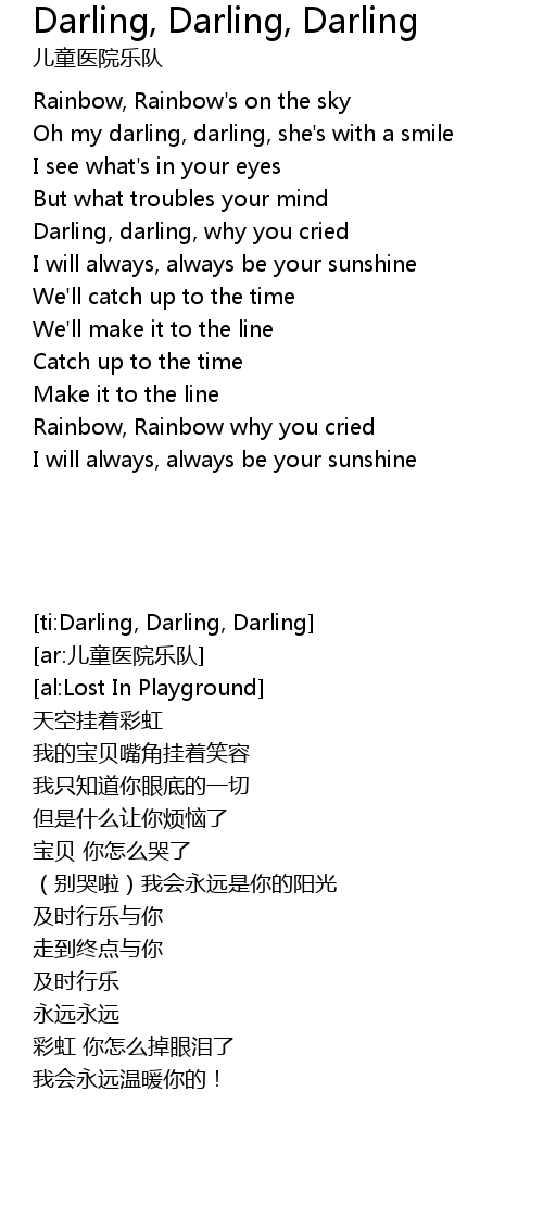 | [01:18.09] | (别哭啦)我会永远是你的阳光 |