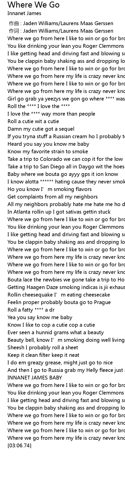 | [00:54.44] | Girl go grab ya yeezys we gon go where **** was legal |