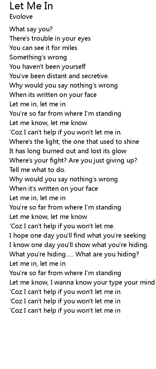 'Coz I can't help if you won't let me in. |