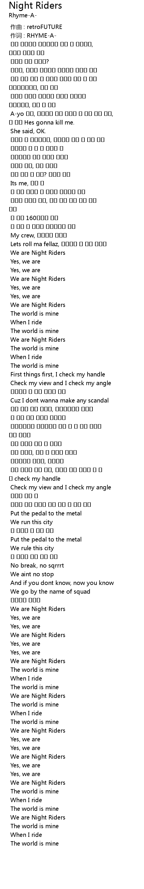 | [01:02.297] | Lets roll ma fellaz, 번쩍이는 두 개의 바퀴를 |