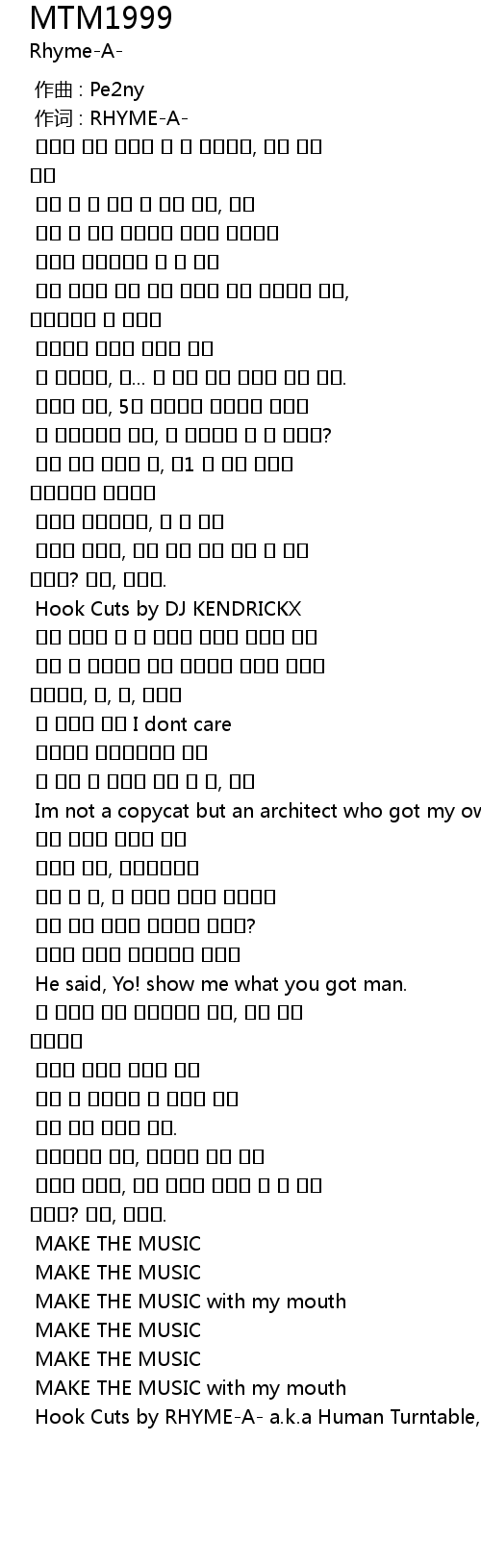 | [02:05.686] | Hook Cuts by RHYMEA a. k. a Human Turntable, DJ KENDRICKX |