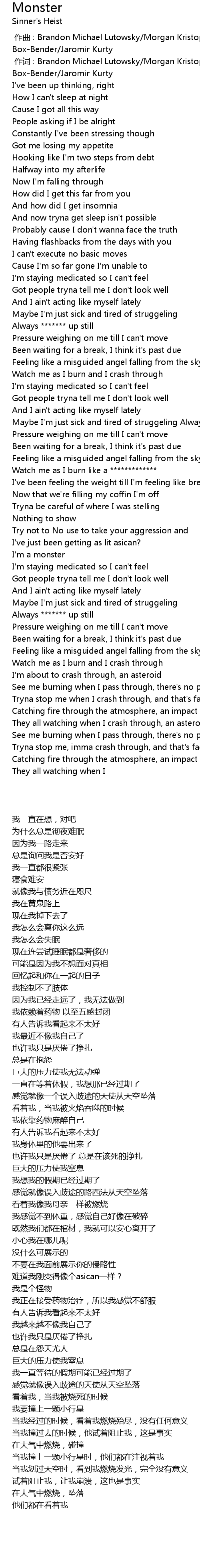 | 歌曲 | Monster |