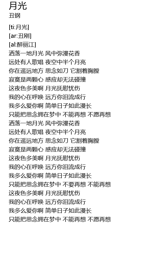 | [00:57.95] | 远处有人歌唱 夜空中半个月亮 |