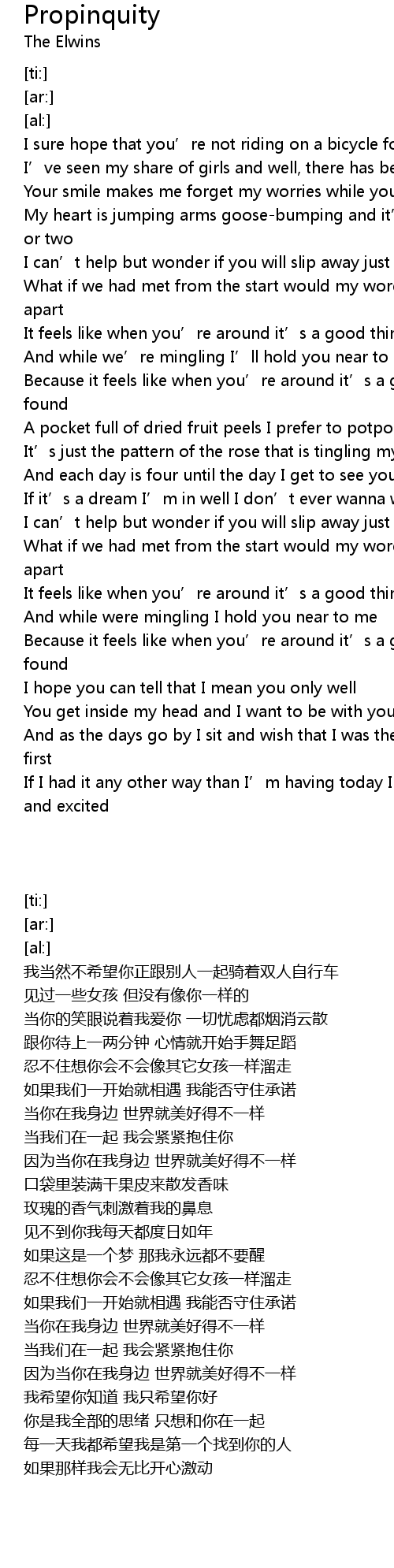 | 歌曲 | Propinquity |