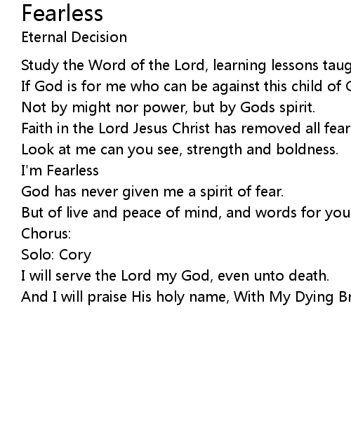 | Faith in the Lord Jesus Christ has removed all fears | |