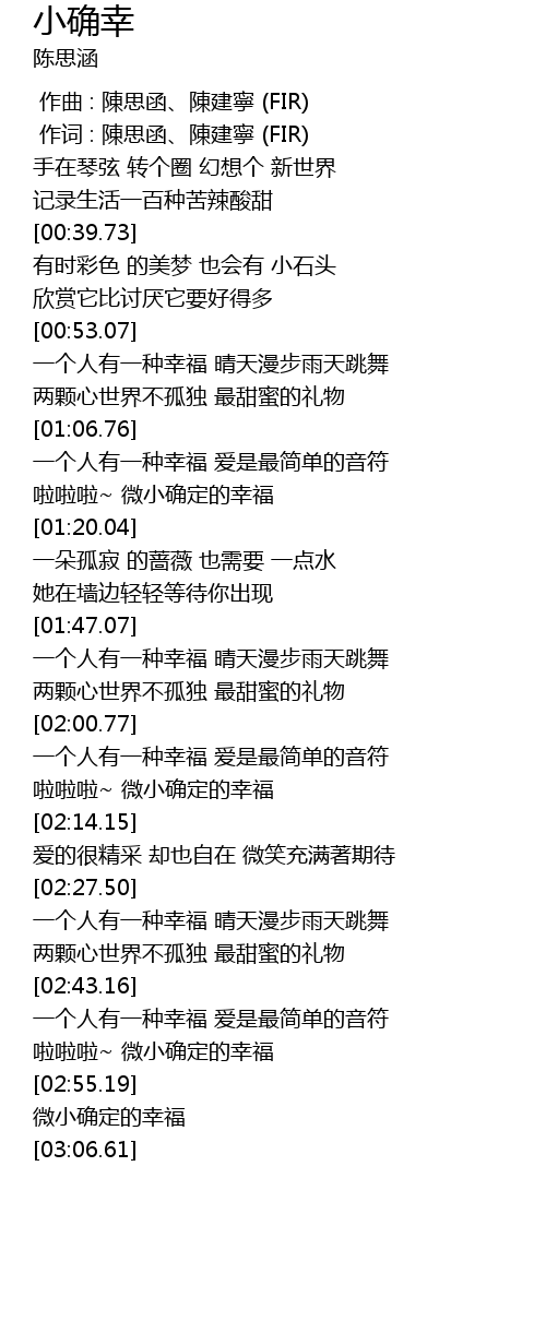 | [02:57.95] | wēi xiǎo què dìng de xìng fú |