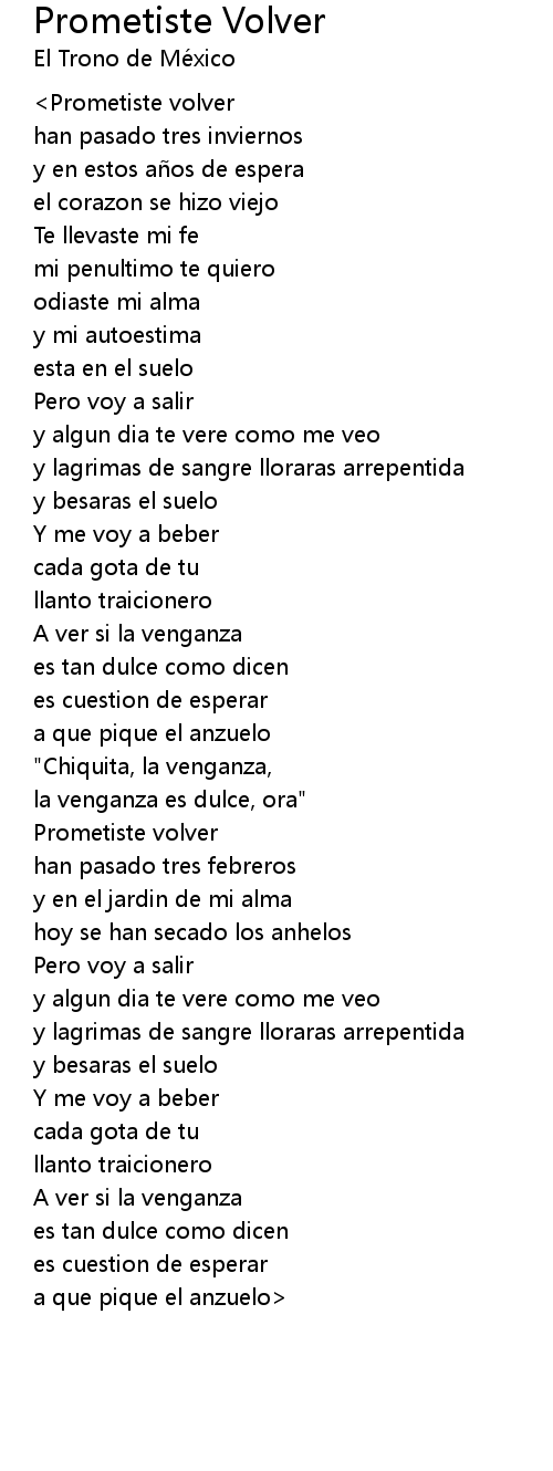 | 歌曲 | Prometiste Volver |