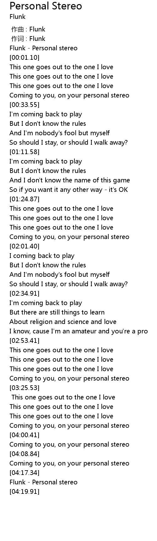 | [04:18.02] | Flunk - Personal stereo |