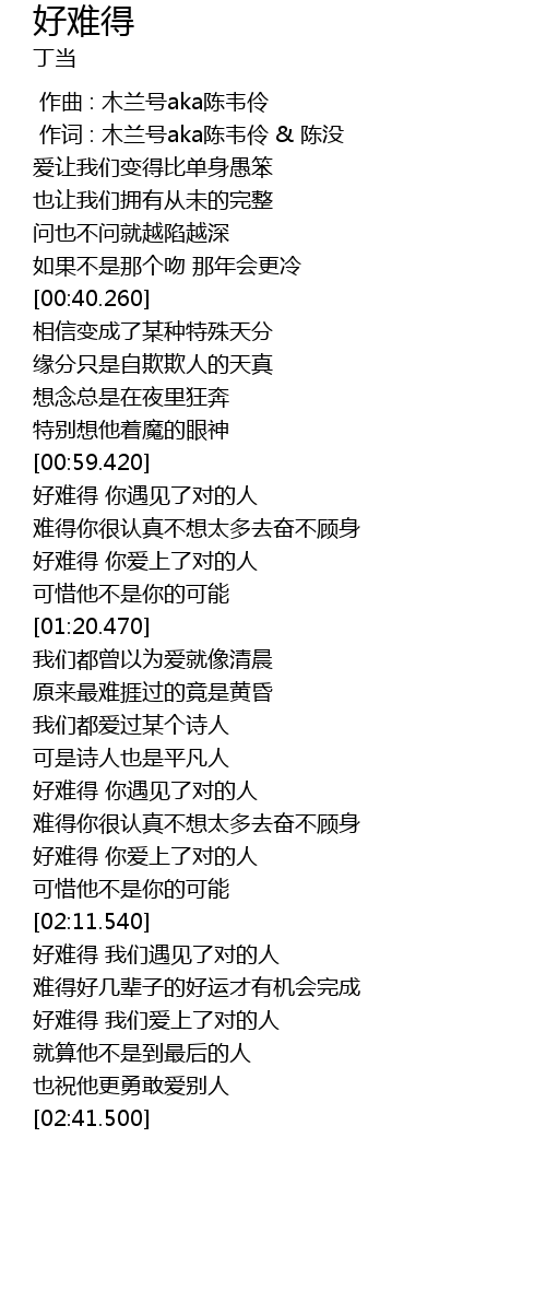| [00:01.00] | 作词 : 木兰号aka陈韦伶 & 陈没 |