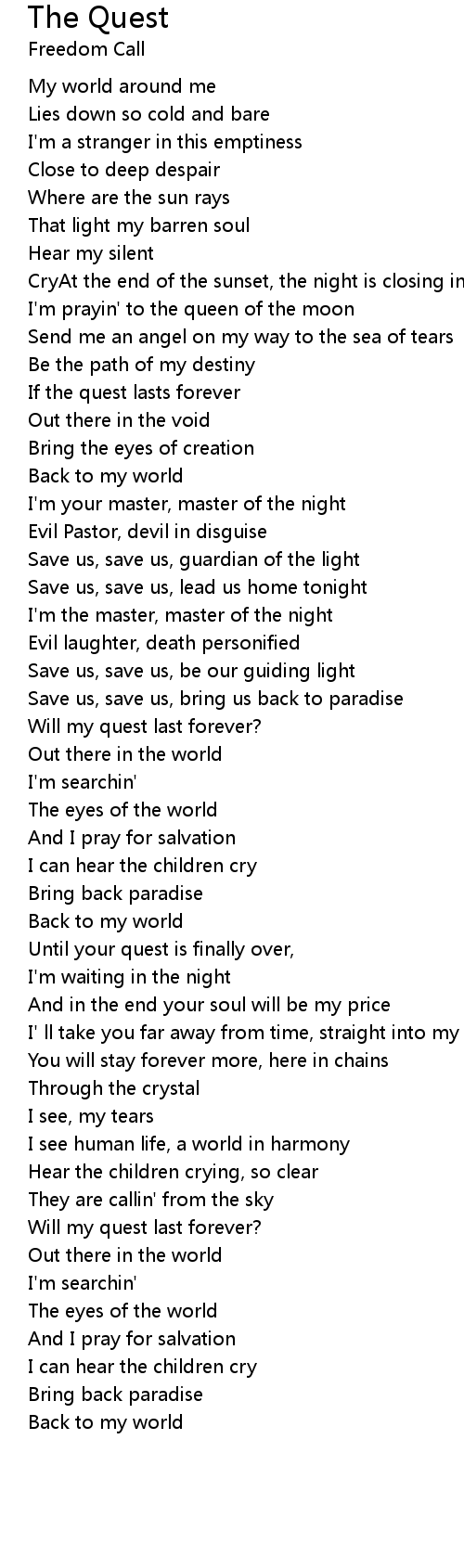 Until your quest is finally over, |