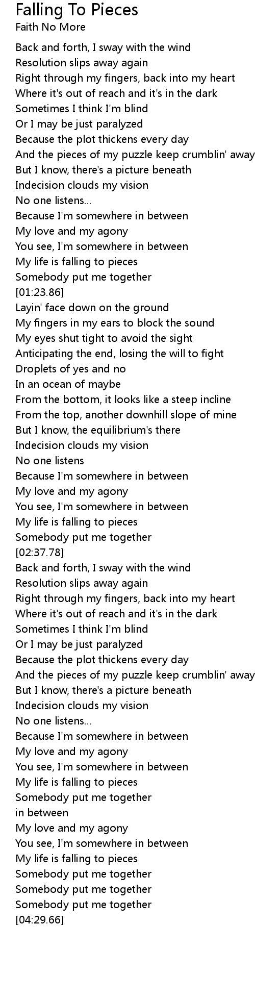 My life is falling to pieces |