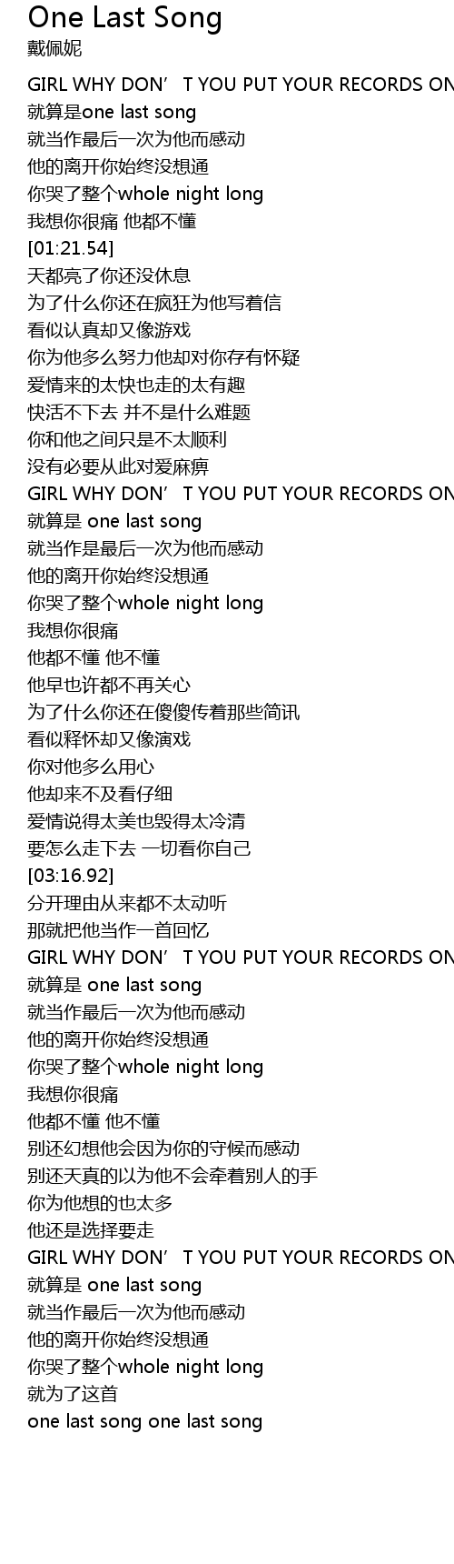 | [03:29.52] | GIRL WHY DON’T YOU PUT YOUR RECORDS ON |