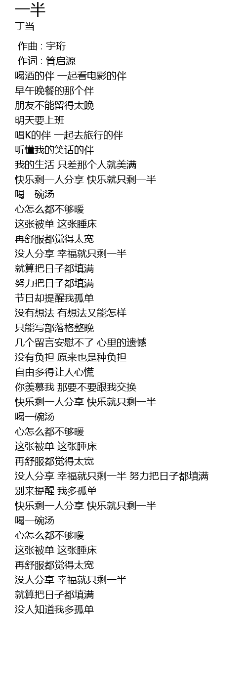 | [03:45.400] | 没人分享 幸福就只剩一半 |