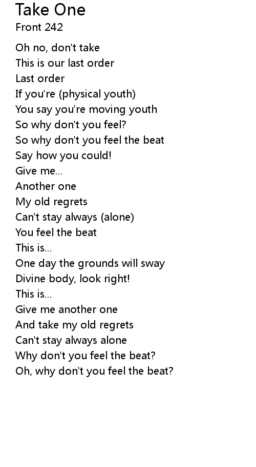 | So why don't you feel the beat | |