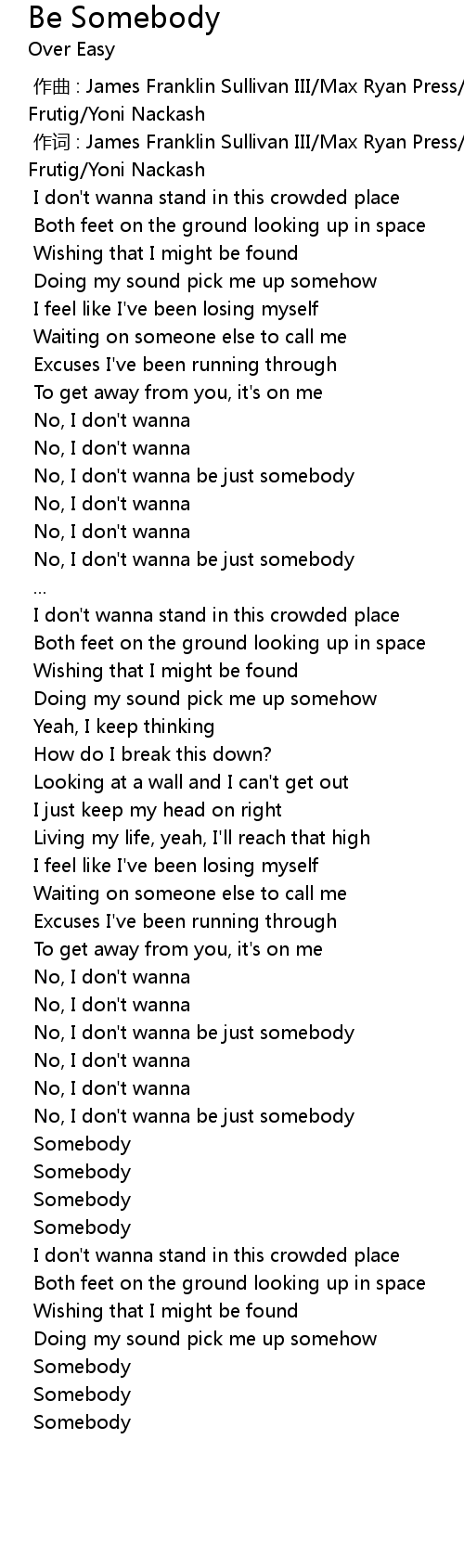 | [00:45.345] | No, I don' t wanna be just somebody |