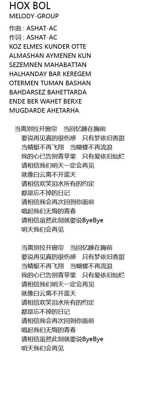 | 歌曲 | HOX BOL |
