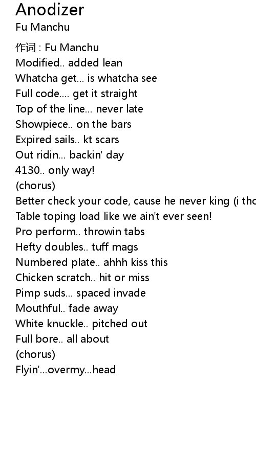 | 作词 : Fu Manchu | |