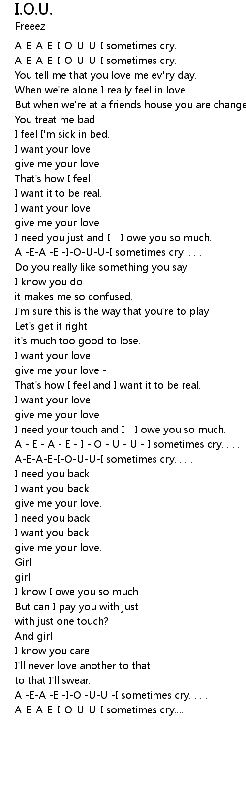 A -E-A -E -I-O-U-U-I sometimes cry. . . . |