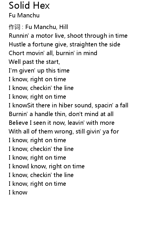 | 作词 : Fu Manchu, Hill | |