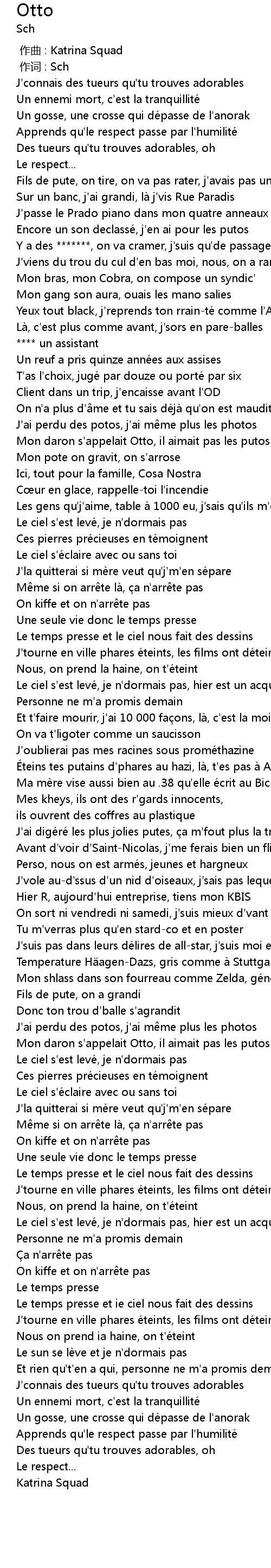 | [02:52.98] | Mon daron s' appelait Otto, il aimait pas les putos |