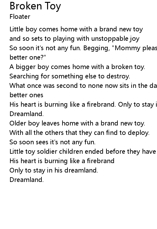 | A bigger boy comes home with a broken toy. | |