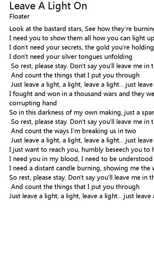 | Just leave a light, a light, leave a light... just leave a light on. |