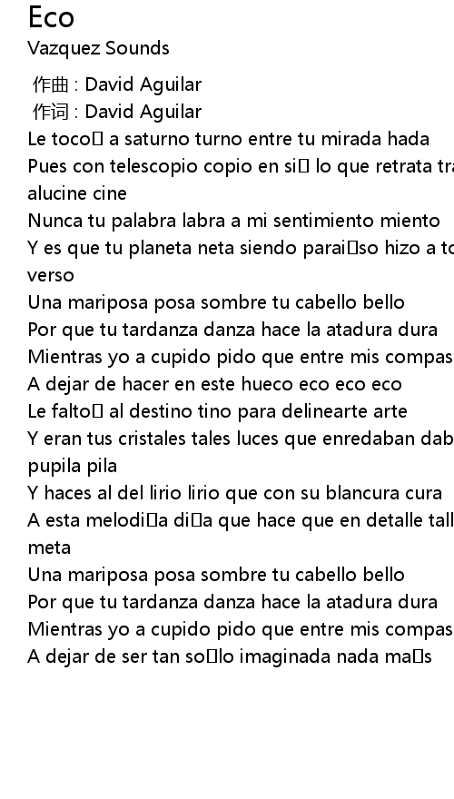 | [02:14.430] | A esta melodía día que hace que en detalle talle casi a mi cometa meta |