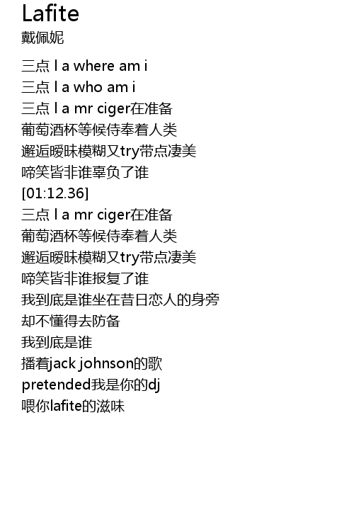 | [02:02.18] | 喂你lafite的滋味 |