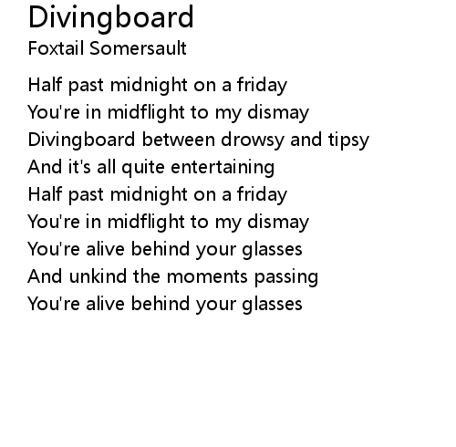 | [00:34.68] | Divingboard between drowsy and tipsy |