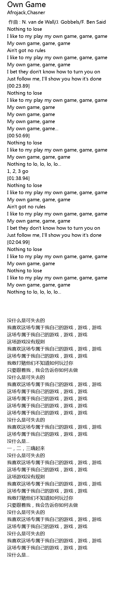 | [00:59.42] | 这场专属于我自己的游戏,游戏,游戏 |