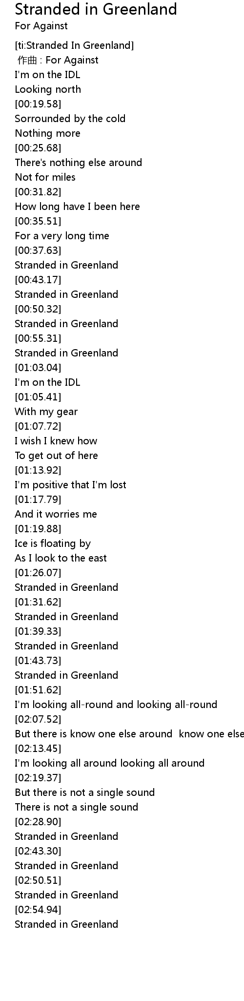 | [02:51.71] | Stranded in Greenland |